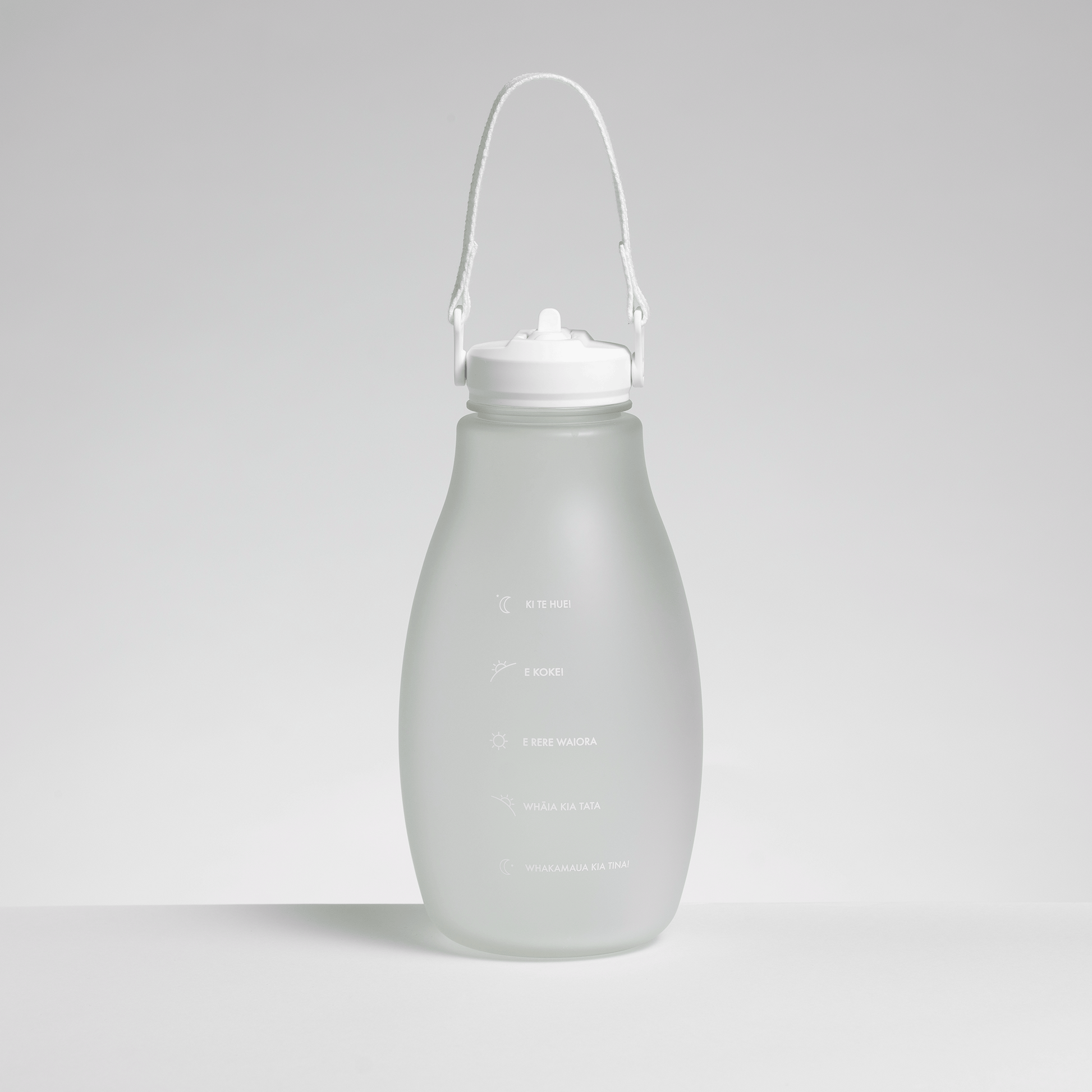 A reo Māori time-tracking water bottle that is indigenous in thought, and sexy in shape.