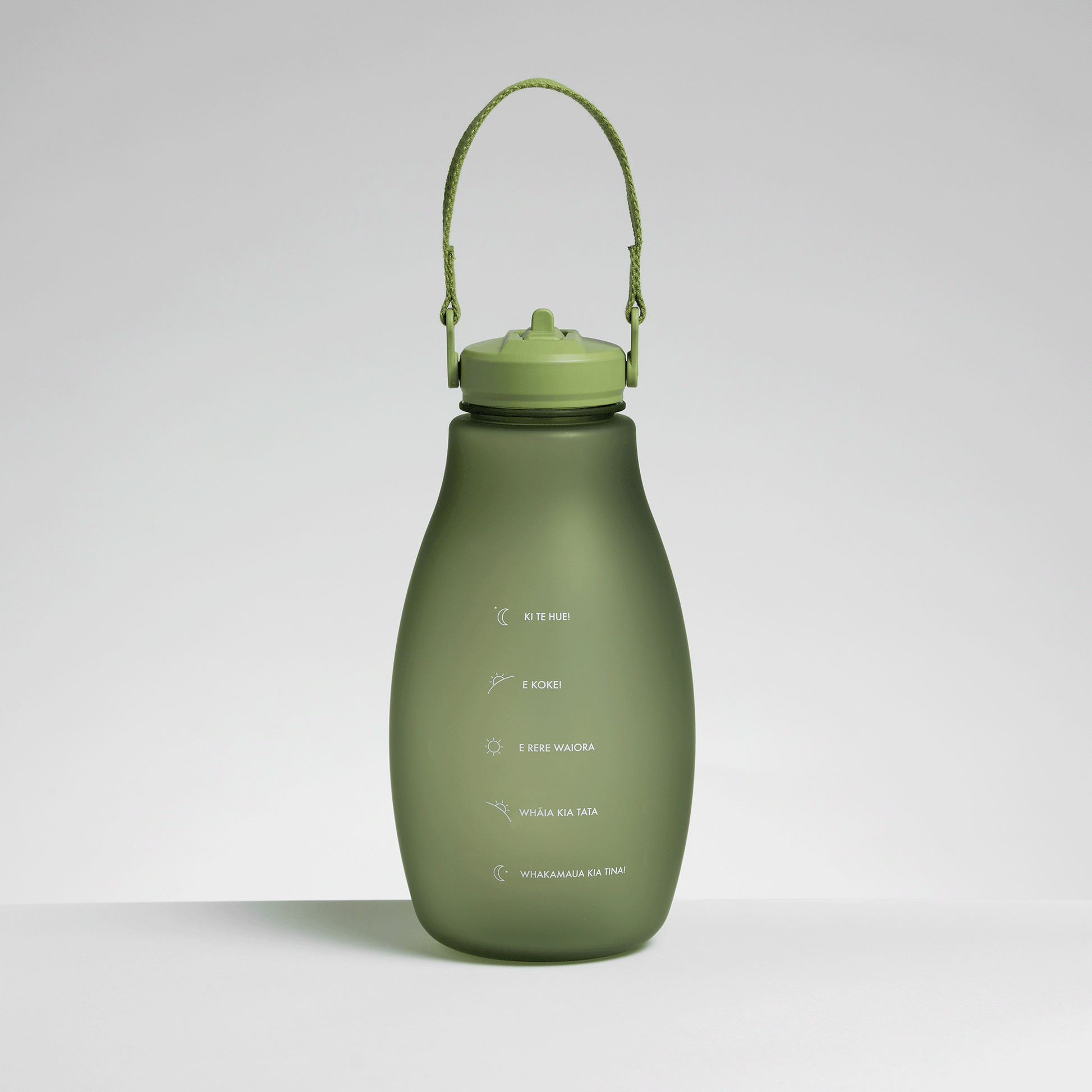 A reo Māori time-tracking water bottle that is indigenous in thought, and sexy in shape.